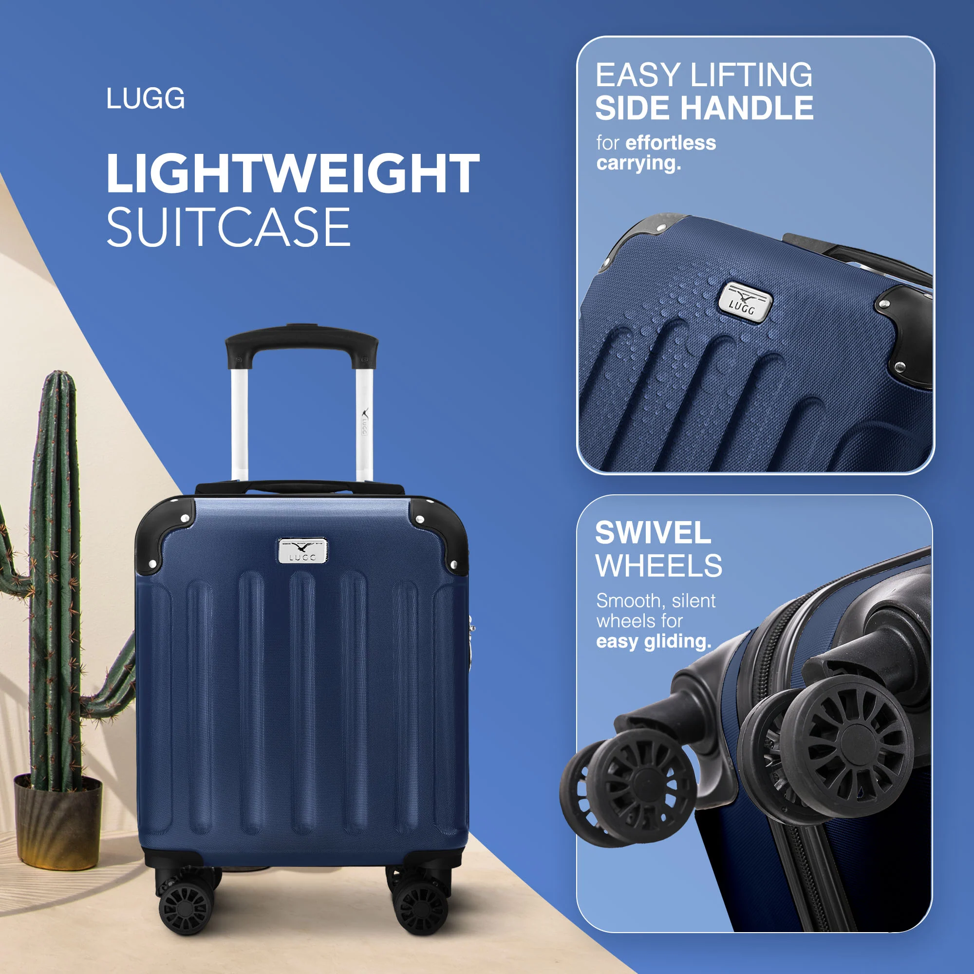 LUGG Skywander 15 Inch Lightweight Underseat Cabin Bag – EasyJet Approved Carry-On Suitcase, Durable ABS Hard Shell (45x34x20cm) - Midnight Blue